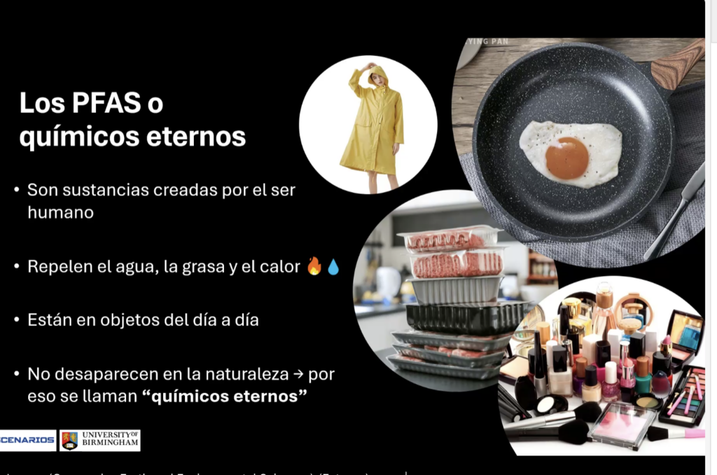 During the session, we explored how human activity has shaped the planet, and how synthetic chemicals and plastics have influenced environmental change over time. We explained what PFAS are, why they are so persistent, how they can travel through water and food, and why research projects such as SCENARIOS are essential to better understand and manage these substances.