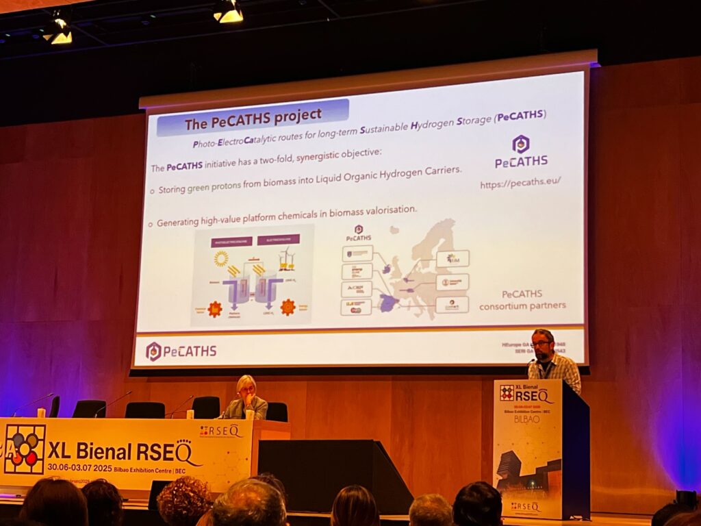L’edició actual de la “Reunió Biennal” es va dividir en 16 simposis que van tenir lloc en 5 sessions paral·leles durant tres dies, en què investigadors nacionals i internacionals van presentar els avenços més avançats en química. Hi va haver més de 1.200 participants, 8 conferències plenàries, 100 conferències convidades i 200 comunicacions orals. La difusió va anar acompanyada de debats fructífers amb col·legues amb interessos convergents en química verda, materials fotoelectrocatalítics, química sostenible impulsada per llum i electrons, i cribratge assistit per dades de nous materials. Les contribucions de PeCATHS van despertar un interès significatiu, tant pel que fa als esforços de desenvolupament del Paquet de Treball 3 (una empresa conjunta entre CIC energiGUNE i Trinity College Dublin) com a les perspectives prometedores del consorci PeCATHS.