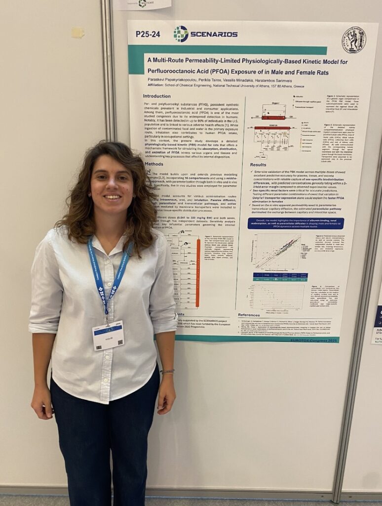 Paraskevi Papakyriakopoulou, de la Universitat Tècnica Nacional d’Atenes, va presentar un pòster titulat “Un model cinètic fisiològicament limitat per a la permeabilitat multiruta per a l’exposició a l’àcid perfluorooctanoic (PFOA) en rates mascles i femelles“, que destaca els nous avenços en la modelització toxicocinètica mecanística. El treball presentat introdueix un model cinètic fisiològic (PBK) complet per descriure l’absorció, la distribució, el metabolisme i l’excreció del PFOA en rates a través de múltiples vies d’exposició. Basant-se en models anteriors i ampliant-los, integra processos limitats per la permeabilitat dins de 16 compartiments, amb el suport de la parametrització a partir de conjunts de dades in vitro i in vivo. El model té en compte les vies oral, intravenosa i inhalatòria. L’anàlisi de sensibilitat va destacar el paper central dels processos d’unió a proteïnes i de transport renal específics del sexe en la configuració de la cinètica interna del PFOA, d’acord amb l’eliminació més ràpida observada en femelles. La validació contra múltiples conjunts de dades independents va demostrar una forta precisió predictiva, amb concentracions tissulars simulades generalment dins d’un marge de dues a tres vegades superior a les dades experimentals. Aquest estudi contribueix directament als objectius del projecte SCENARIOS, que aborda els reptes d’avaluar els PFAS dins dels marcs d’avaluació de riscos de nova generació. En integrar explícitament la unió a l’albúmina, la reabsorció renal i el transport paracel·lular en un model PBK multiruta, el treball proporciona una lent mecanicista per interpretar les diferències relacionades amb el sexe en la cinètica del PFOA. La inclusió de processos d’inhalació refinats i una subcompartimentació renal detallada amplia l’àmbit d’aplicació, oferint una plataforma versàtil per explorar les mètriques de dosi interna en diversos escenaris d’exposició.