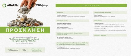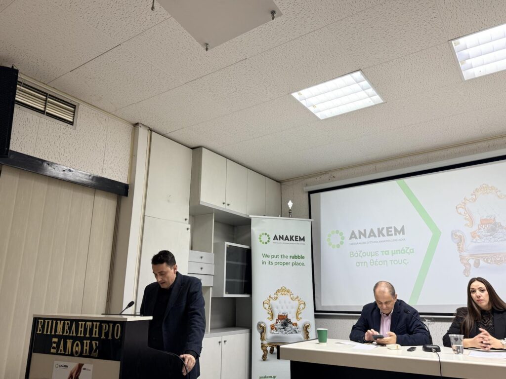 Un hito clave en este proceso fue la organización y el apoyo del evento “Gestión alternativa de residuos de construcción y demolición en obras privadas y públicas”, celebrado el 3 de diciembre de 2025 en Xanthi, Macedonia Oriental y Tracia, en el Departamento Regional de Tracia de la Cámara Técnica de Grecia.